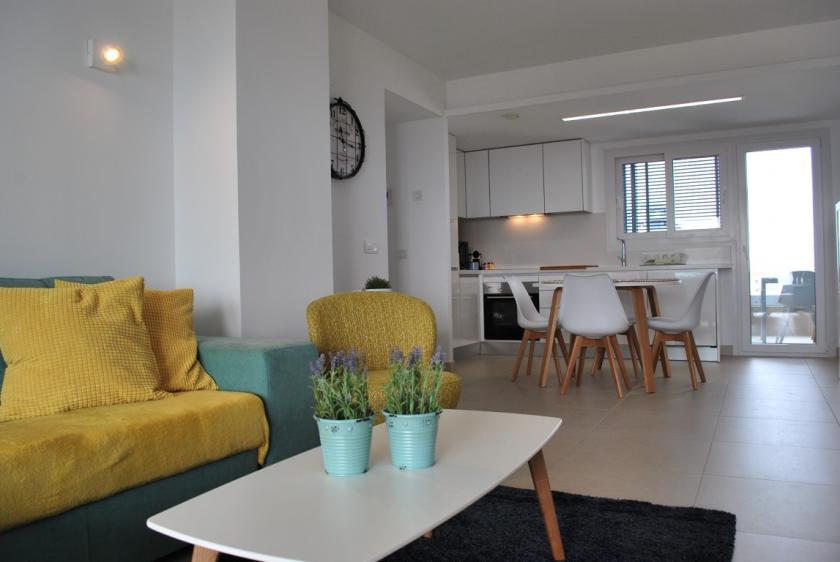 Este apartamento de lujo con espectaculares vistas al mar se encuentra en el 4º piso de Panorama Mar, un nuevo desarrollo frente al mar en Punta Prima, Torrevieja. Este apartamento cuenta con una amplia sala de estar amueblada con una mesa de comedor, sofás de cuero, dos dormitorios (1 con cama doble y 2 con camas individuales), un televisor LCD en el dormitorio principal, aire acondicionado, un televisor LCD en la sala de estar con canales satelitales internacionales y WiFi.